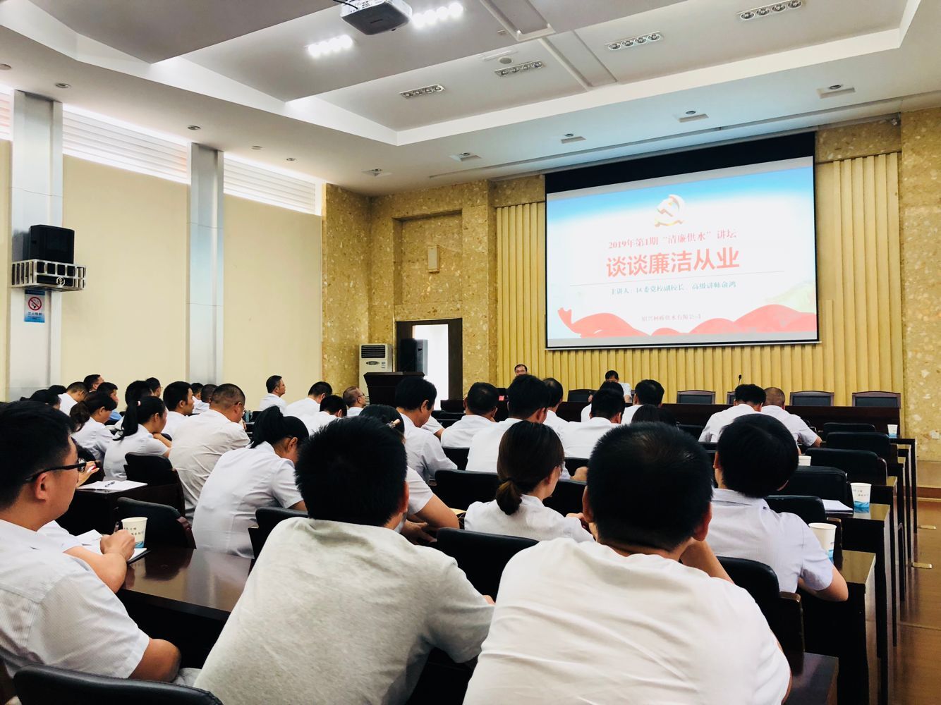 俞老師圍繞“廉潔從業(yè)”這一主題,給大家講明形式、劃清紅線,既有深入淺出的理論闡述,又有廣征博引的案例分析,更有實(shí)踐層面的對(duì)策思考,向我們深刻闡述了新時(shí)代下的新理念、新觀點(diǎn)、新論斷,指出在全面從嚴(yán)治黨新形勢(shì)下,全體黨員及干部要自覺(jué)做到“拒腐蝕、永不沾”,把遵紀(jì)守法、廉潔奉公作為自己的生命線,時(shí)刻保持對(duì)廉潔從業(yè)的敬畏尊崇,時(shí)刻用身邊的典型案例警示自己,時(shí)刻筑牢廉政建設(shè)的防線。以積極陽(yáng)光的姿態(tài)爭(zhēng)當(dāng)廉潔從業(yè)好員工,為供水事業(yè)發(fā)展做出更大的貢獻(xiàn)。