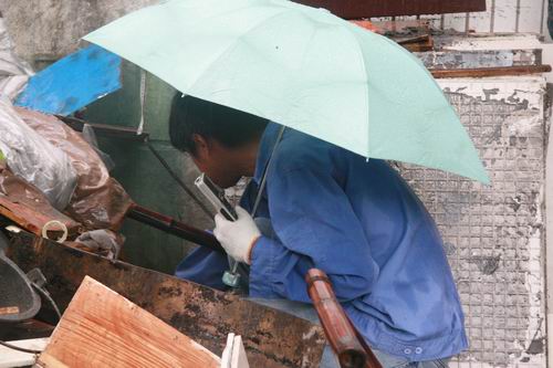 又抄了幾十只表,小吳來到一個(gè)木板、破家具等雜物的角落,把一張破竹椅拿開,又把一塊木板移開,然后蹲下身去撥弄起來,過了一會(huì)離開了。我說,你在找什么?他說,這下面有只表要抄,這戶人家把裝水表的位置作堆積場所了,不好抄。