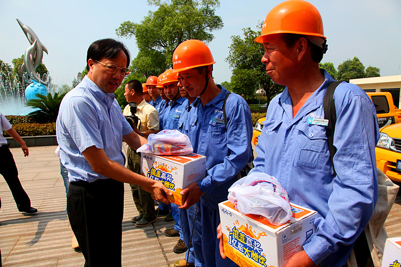 7月12日上午,縣委書記何加順、副縣長周樹森等縣委、縣政府領(lǐng)導(dǎo)來到供水公司慰問在高溫下作業(yè)的供水一線職工,親手把防暑降溫慰問品送到他們手上,并再三叮囑有關(guān)人員落實(shí)好夏季高溫時段的防暑降溫措施,確保一線職工身體健康。集團(tuán)董事長倪阿泉、總經(jīng)理單寶子等領(lǐng)導(dǎo)陪同慰問。