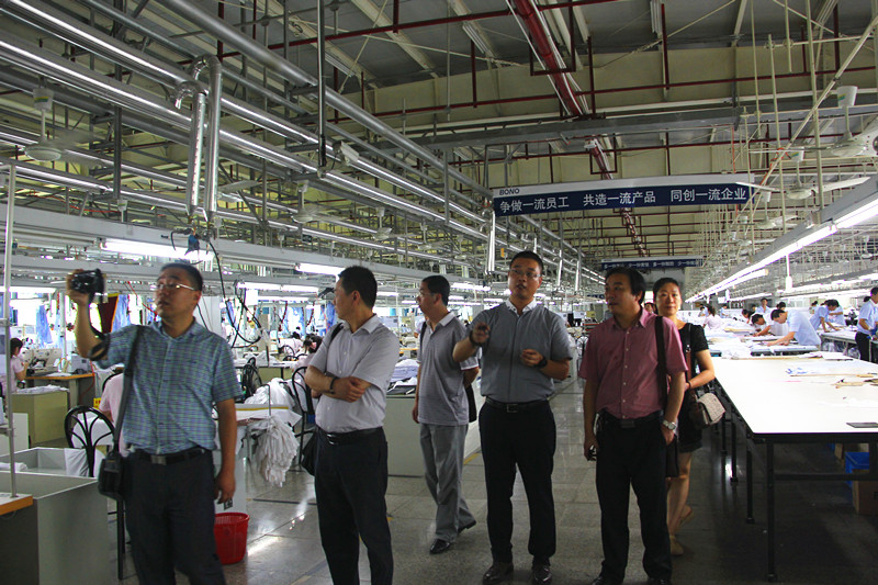圖為參觀寶鳥(niǎo)服飾公司車間
