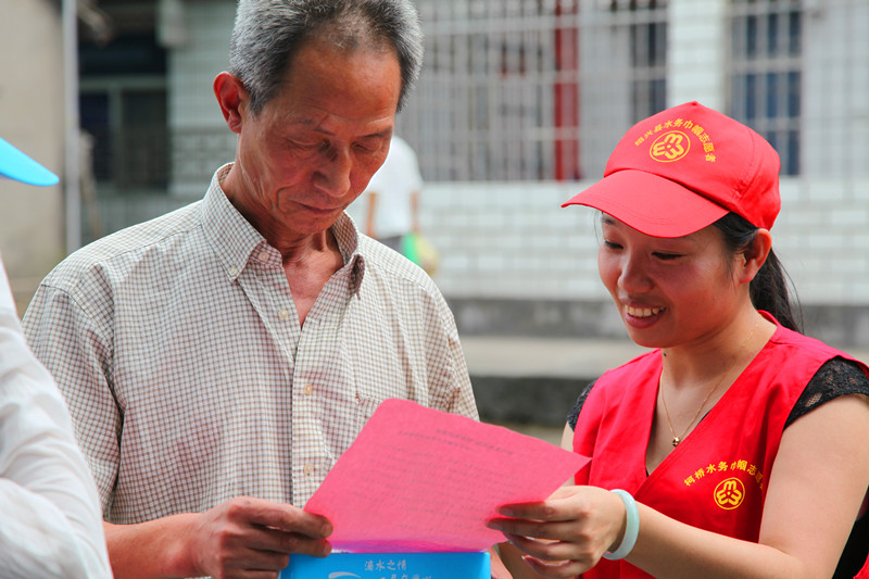 6 月30 日上午,集團(tuán)公司團(tuán)委、婦聯(lián)聯(lián)合開展“助力五水共治、共創(chuàng)美好家園”宣傳活動,水務(wù)志愿者們來到大坂湖直江沿岸的華舍街道華舍村、蜀阜村、興華社區(qū)等村(居),向岸邊居民宣傳“五水共治”,勸導(dǎo)河邊居民愛護(hù)水環(huán)境,不要往河里倒污水、扔垃圾等。
