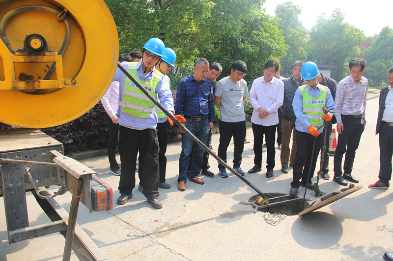 圖為沖洗小組現(xiàn)場進(jìn)行管網(wǎng)沖洗