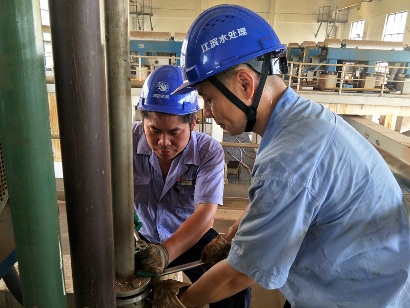 紹興水處理公司維修人員為了搶修設(shè)備,汗流浹背。
