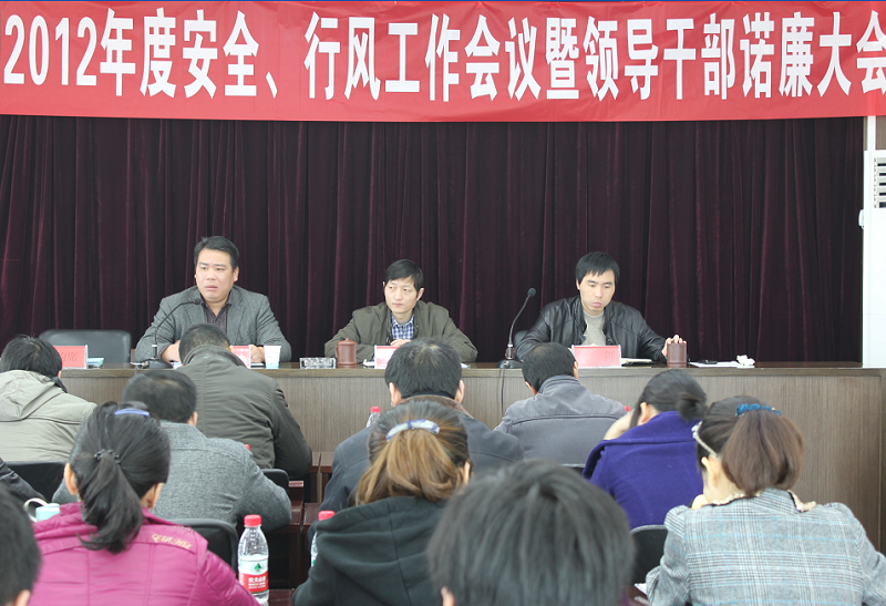 公司董副總首先對2011年安全、行風(fēng)工作開展情況作了總結(jié),并從提高意識、加強(qiáng)監(jiān)管、嚴(yán)格考核三方面對今年的安全、行風(fēng)工作進(jìn)行了部署。陳劍總經(jīng)理在會上肯定了過去一年公司安全、行風(fēng)工作取得的成績,同時要求全體員工充分認(rèn)識安全生產(chǎn)與行風(fēng)建設(shè)的重要性,在今后的工作中,突出重點,狠抓落實,使安全、行風(fēng)工作有新的突破。會上,公司與各部室簽訂了安全、行風(fēng)目標(biāo)管理責(zé)任書,中層正職以上領(lǐng)導(dǎo)干部向與會人員作諾廉報告。