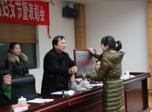 圖為集團(tuán)高副書記為獲得2011年度婦聯(lián)先進(jìn)集體頒獎(jiǎng)