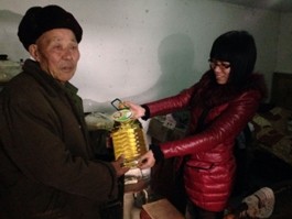 志愿者們?yōu)槔先怂腿チ舜竺?,食用油,水果等年貨物資,老人看到我們的到來(lái),顯得非常高興,就仿佛看到親人到來(lái)一般,我們祝愿老人健康長(zhǎng)壽。
