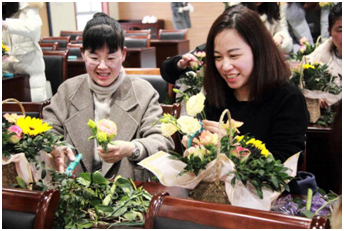 女人遇見花,注定是場(chǎng)美麗的邂逅。3月8日上午,排水公司舉行了“慶三八——提升女性修養(yǎng)”為主題的花藝培訓(xùn)活動(dòng)?;顒?dòng)邀請(qǐng)專業(yè)花藝?yán)蠋熃o女職工們講解花藝知識(shí),介紹鮮花保鮮小竅門,傳授插花藝術(shù)和技巧,集團(tuán)婦聯(lián)主席童佳萍特邀出席?;顒?dòng)現(xiàn)場(chǎng),春意盎然,花香四溢,女職工們躍躍欲試,小試牛刀??的塑?,向日葵,洋桔梗……在女神們的巧手里煥發(fā)出新的生機(jī)。鮮花和女神更配哦。