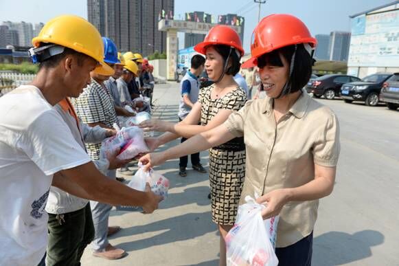 慰問(wèn)現(xiàn)場(chǎng),成水鳳一行向奮戰(zhàn)在一線的施工人員送上防暑用品,與工人們握手,詢問(wèn)工人工作情況和工地的防暑降溫工作,對(duì)工人們的辛苦奉獻(xiàn)表示感謝,還特別叮囑工人一定要注意防暑降溫,合理安排施工時(shí)間,在安全的前提下保質(zhì)保量地完成施工任務(wù)。
