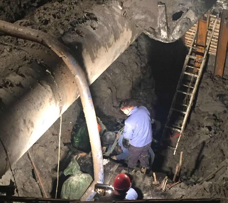 接到搶修電話后,公司相關(guān)人員立即趕至現(xiàn)場,并迅速組織搶修隊(duì)伍投入搶修。關(guān)閥門、排水、開挖路面……搶修工作緊張而有序地進(jìn)行著。冬夜的戶外徹骨寒冷,搶修人員雖然已經(jīng)凍得瑟瑟發(fā)抖,滿臉布滿疲憊,但他們始終咬牙堅(jiān)持。經(jīng)過17個(gè)小時(shí)的艱苦奮戰(zhàn),終于在次日早上7點(diǎn)將漏點(diǎn)修復(fù),恢復(fù)正常供水。