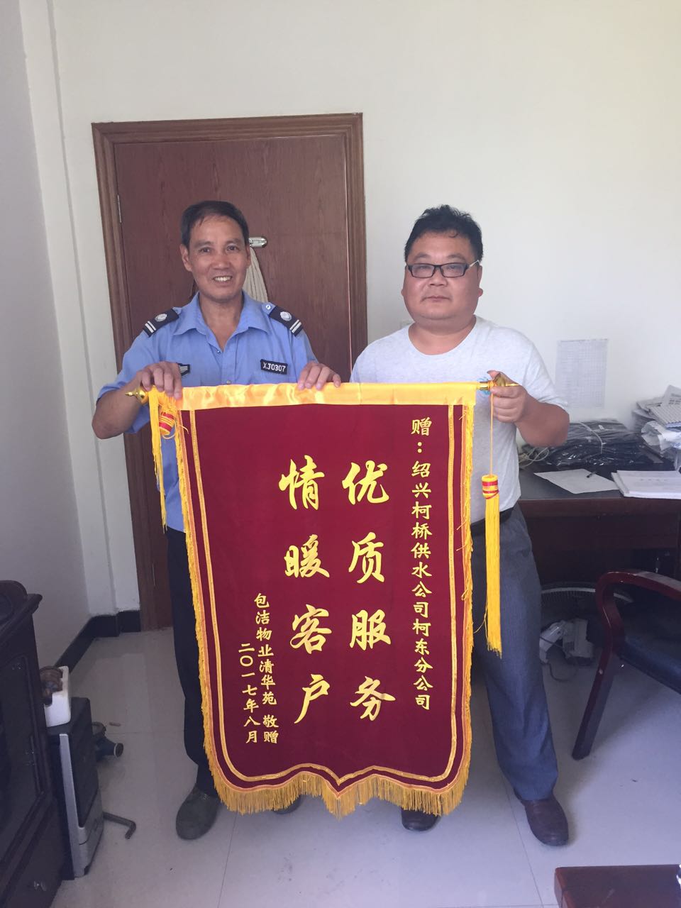 8月25日,平水鎮(zhèn)清華苑包潔物業(yè)專程送來(lái)錦旗,感謝柯東分公司提供的優(yōu)質(zhì)服務(wù)。